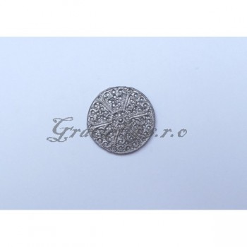 Komponent je vhodný k našití na plášť, kolbouk, tašvici, či opasek. Může sloužit jako oděvní ozdoba. Průměr 3,5cm.