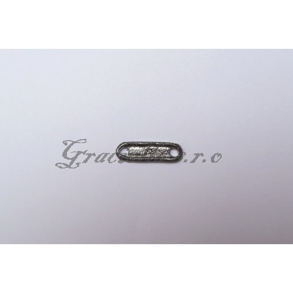 Komponent je vhodný k našití na plášť, kolbouk, tašvici, či opasek. Může sloužit jako oděvní ozdoba. Rozměry - 2x0,5cm.