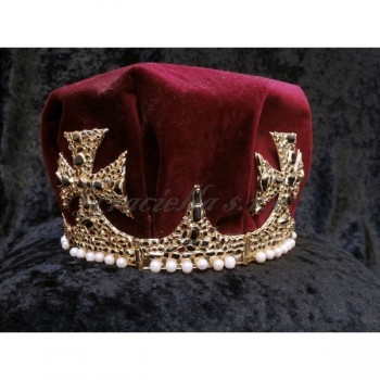 Monumentální pozlacená koruna s granáty, pyroalmandiny a říčními perlami. Koruna je inspirována britskými korunovačními klenoty.
