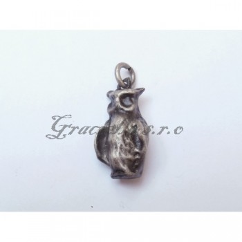 Drobný cínový přívěsek ve tvaru sovy. Velikost cca 2,5 cm.