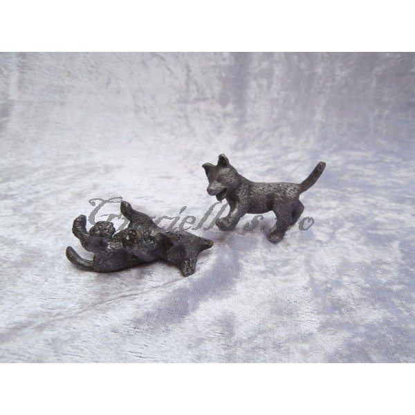 Soška hrajícího si vlčete. Povrchová úprava-cín s patinou.