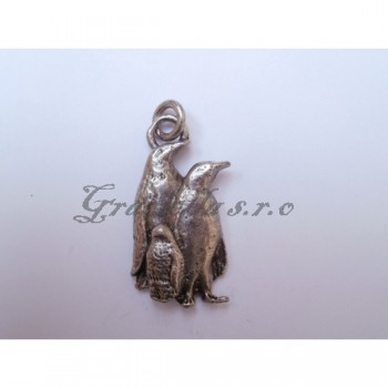 Cínoví přívěsek rodinky tučňáků na krk. Přívěsek si můžete objednat v povrchové úpravě starostříbro nebo staromosaz.