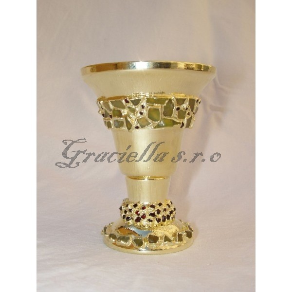 Kalíšek s olivíny a českými granáty. Velikost - 8 cm, zlacený.