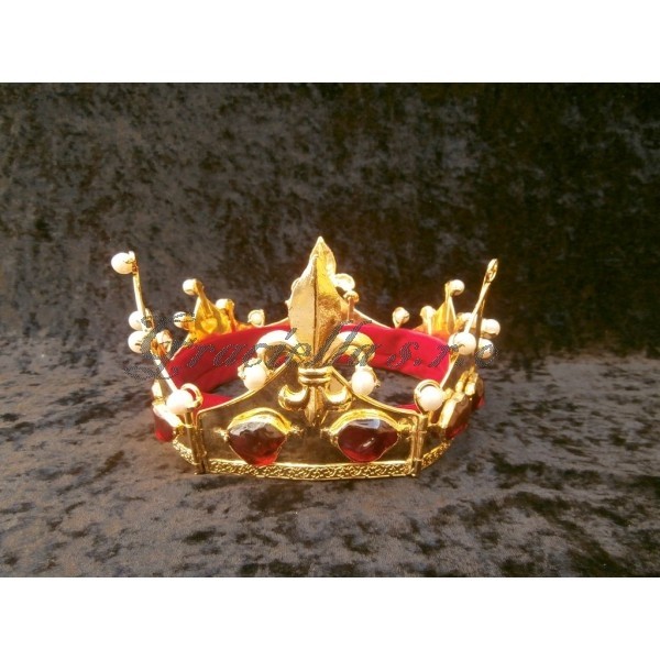 Pozlacení koruna s ručně tavrovanými skleněnými kameny a říčními perlami.