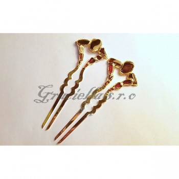 Sada dvou bodel pro společenské příležitosti. Jehlice jsou lehké a jednoduše se vkládají do účesu. Délka jehlice je 10cm. Výrobek je vysoce kvalitně zlacený, ozdobený granáty-pyroalmandiny českého původu.