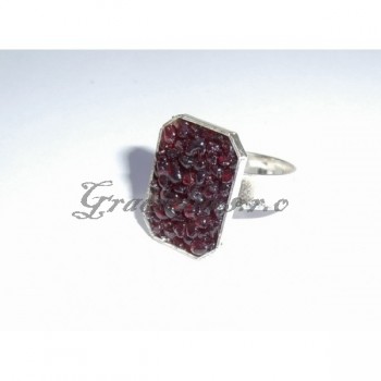 Prsten s granáty – pyropy českého původu (naleziště Ratboř – Sedlec u Kolína). Velikost 1,9x1,4cm.