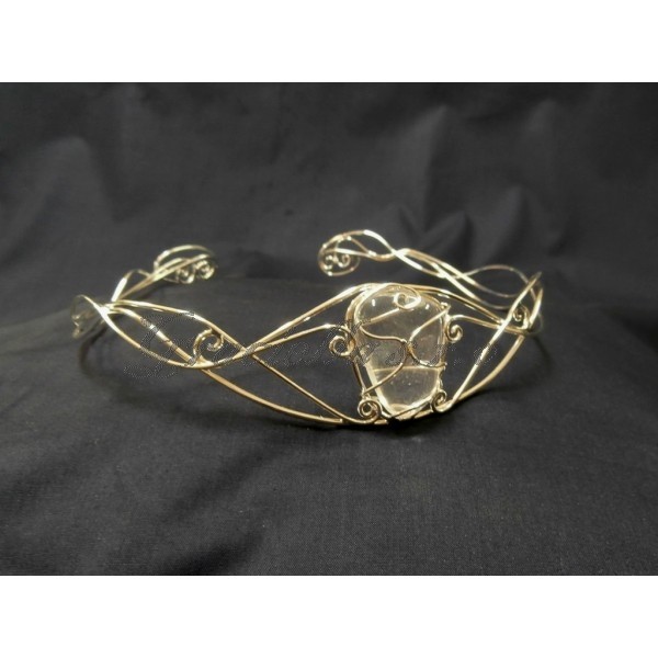 Nádherná postříbřená drátovaná čelenka s horským křišťálem.