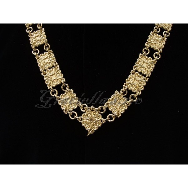 Pozlacený ozdobný řetěz. Délka strany komponentu cca 2 cm. Možno i v postříbřené variantě.