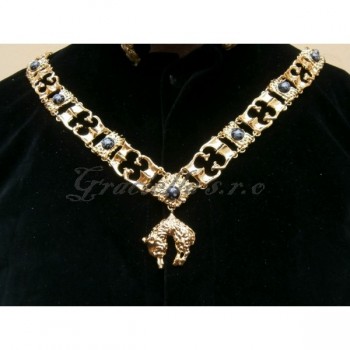 Řád zlatého rouna, přesná kopie habsburského řádu vystaveného ve Vídeňské klenotnici. Řád je silně zlacený, zdobený vločkovými obsidiány. Velikost článků: 3,5x2,3 cm a 1,3x2,3cm. Velikost zlatého rouna: 2,5x3,5cm.